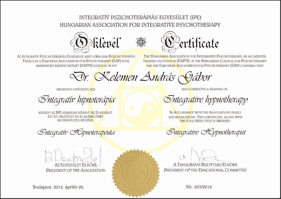 Ezúton is szívből gratulálunk Kelemen András Doktor Úrnak, a kiemelkedő eredménnyel teljesített Integratív Hipnoterápia képzés elvégzéséért!
