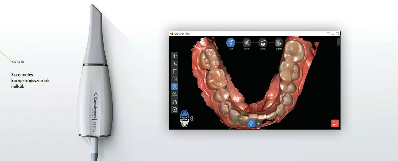 Dr. Kelemen Péter a csúcskategóriás Carestream 3700-as szájüregi szkennert használja.